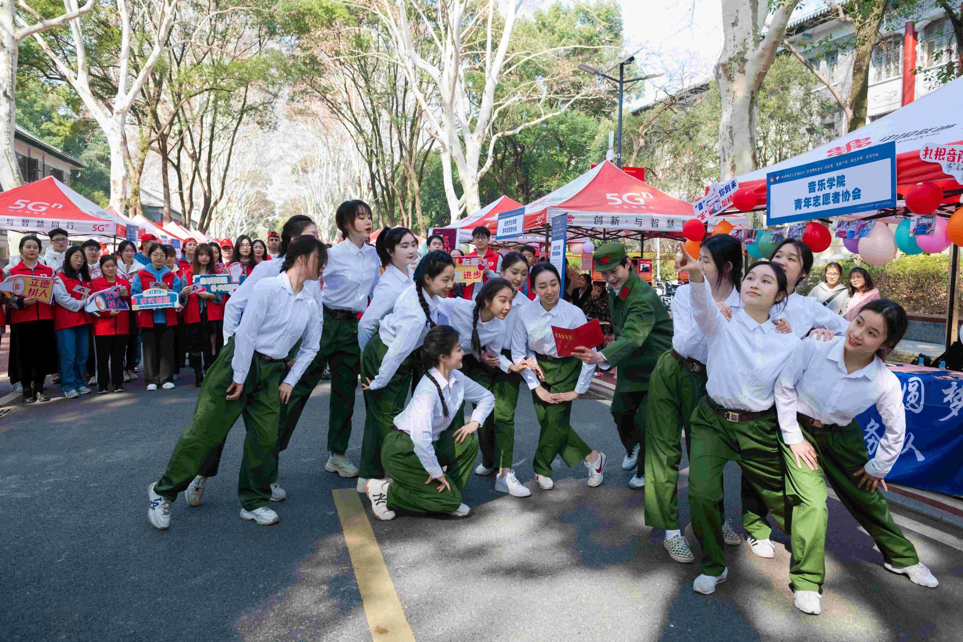 启动仪式后,志愿服务嘉年华在桂中路举行。桂中路两旁设立了“理”响青年、追“锋”青年、环保青年、树人青年、互助青年五个主题共42个展区,来自湖北省红十字会、武汉血液中心、米兰网投互助社、洋雷锋志愿服务队、“爱我千湖”湖泊保护志愿服务队、志愿公益社团、各学部学院(所、中心)青年志愿者协会等组织,以视频展播、节目表演、喷绘墙报、讲解介绍等形式,多样化呈现“学雷锋”志愿服务典型事迹、工作经验和优秀成果。