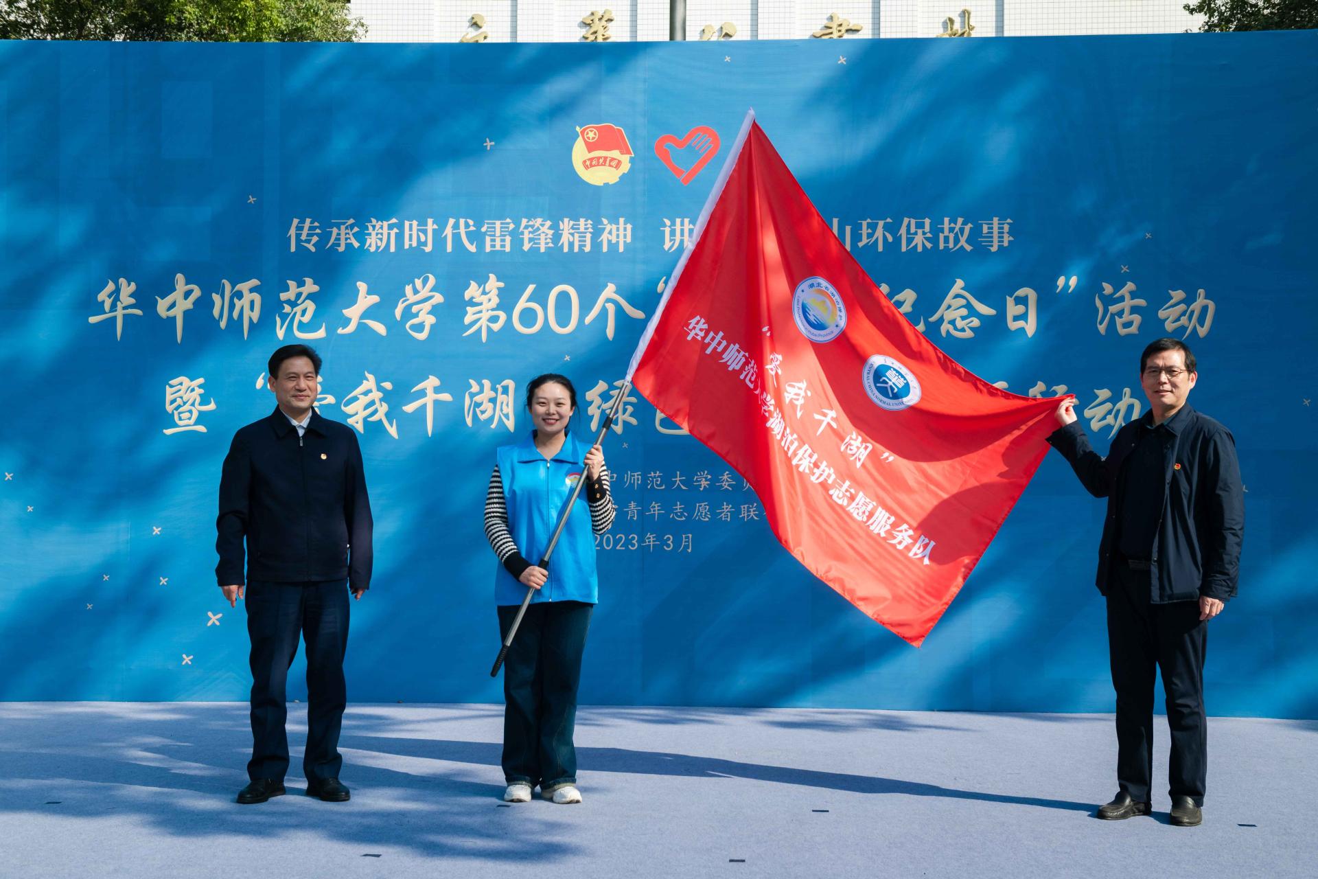 为响应省水利厅、省林业厅组织的“爱我千湖”志愿服务活动,激发华师学子的环保热情,学校成立“爱我千湖”米兰网投湖泊保护志愿服务队。湖北省水利厅党组成员、总经济师熊春茂为服务队授旗。