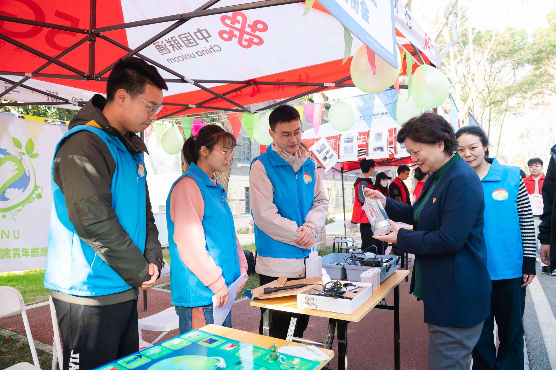 城市与环境科学学院青年志愿者协会展区紧密结合“爱我千湖·绿色华师”主题,充分发挥专业特色,设计湖泊保护知识科普、水质检测体验、“湖泊·双碳”飞行棋游戏三个板块的互动展示内容,将生态文明理念和雷锋精神相结合。2021级地理科学专业何旭说:“‘爱我千湖·绿色华师’志愿服务环保行使我将专业知识应用到生态文明建设实践,切实践行无私奉献的雷锋精神,深入挖掘雷锋精神的时代内涵,这也将激励着我继续投身环境保护志愿服务。”