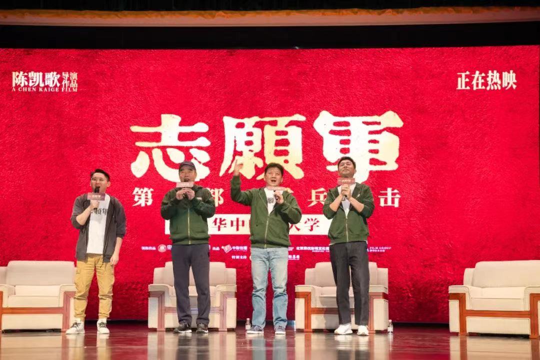 华大在线讯(记者 郝日虹 曾楚航)为深入学习贯彻习近平文化思想,进一步弘扬伟大抗美援朝精神,强化师生爱国强军意识,10月22日,《志愿军:雄兵出击》观影交流会在米兰网投大学生活动中心大礼堂举行。导演陈凯歌携编剧张珂,主演王砚辉、朱亚文等电影主创团队,与我校师生交流分享影片幕后故事。湖北省委宣传部常务副部长邓务贵,湖北长江电影集团党委书记、董事长朱雨龙,湖北长江电影集团党委委员、纪委书记、省监委驻集团监察专员彭华,校长郝芳华、副校长任友洲、李鸿飞,校党委副书记陈迪明等出席观影交流会。