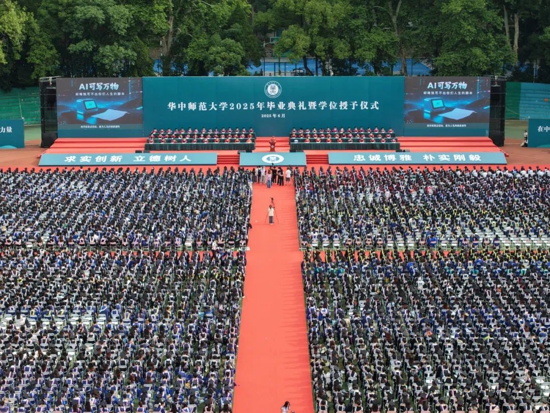 华大在线讯(通讯员 张晓冰 吴艳)6月18日,我校2025年毕业典礼暨学位授予仪式在佑铭体育场举行。校党委书记夏立新,校长彭双阶,校党委副书记查道林,副校长任友洲、李鸿飞,校党委副书记、纪委书记刘继文,副校长刘宏达,以及学校学术委员会代表、教师代表、校友代表、各职能部门和学院负责人出席,与家长代表共同见证2025届毕业生圆满完成学业,为同学们启程奔赴时代山海聚力饯行。典礼由校党委副书记陈迪明主持。