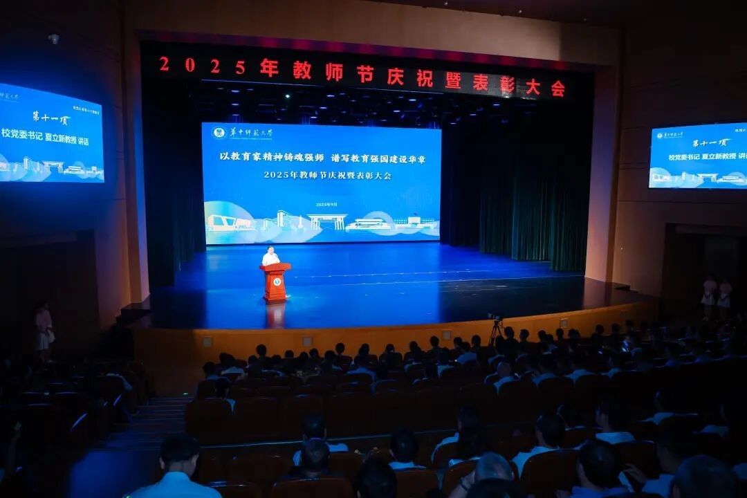 校党委书记夏立新在总结讲话中,代表学校党委向全校教职员工致以节日的问候和崇高的敬意。他表示,回望过去一年,学校深入实施“人才强校”战略,健全教职工思想政治工作体系,深入推进教师评价制度改革,全国教育大会精神在华师落地生根、开花结果。立足当下,教育强国建设规划纲要全面落地,三年行动计划开局起航,新一轮“双一流”建设即将破题起势,在这承前启后、继往开来的关键时期,希望全体华师教师坚定理想信念,筑牢为党育人、为国育才的信仰之基,坚持用习近平新时代中国特色社会主义思想武装头脑、铸魂育人,引导和帮助学生在为祖国和人民的不懈奋斗中放飞梦想、绽放青春;提升育人本领,践行启智润心、引领时代的责任担当,积极适应人工智能时代的要求,积极参与教师教育能力提升工程和数字化赋能行动,不断提升数字素养和育人能力;弘扬仁爱奉献,坚守立德树人、潜心教学的职业情怀,努力成为学生锤炼品格的引路人、学习知识的引路人、创新思维的引路人、奉献祖国的引路人。学校党委将持续完善教师发展支持体系,全力营造尊师重教的浓厚氛围,为大家提供更多元、更精准的服务保障,让老师们在桂子山上安心工作、舒心生活、潜心育人。