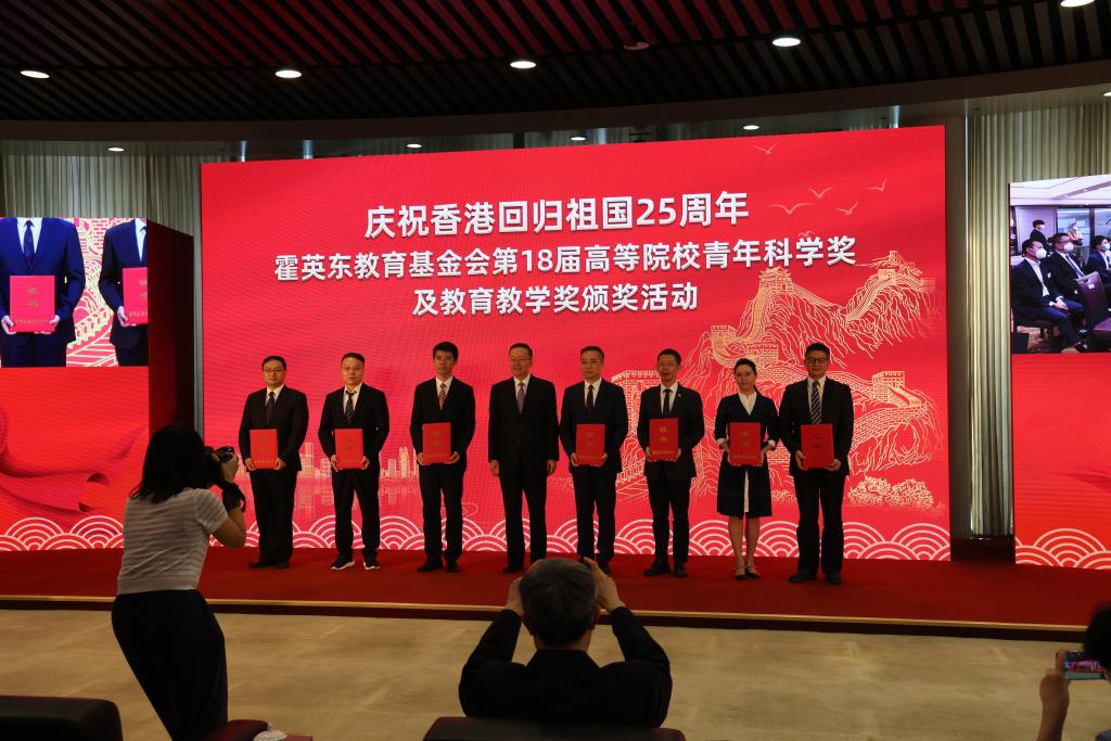 华大在线讯(记者 华轩)7月21日,“庆祝香港回归祖国25周年”霍英东教育基金会第18届高等院校青年科学奖及教育教学奖颁奖活动在北京和香港连线举行。心理学院任志洪教授荣获青年科学奖一等奖,也是我校教师首次获得该奖项的一等奖。校党委书记赵凌云以学校领导和霍英东教育基金会往届获奖代表双重身份,应邀出席颁奖活动。